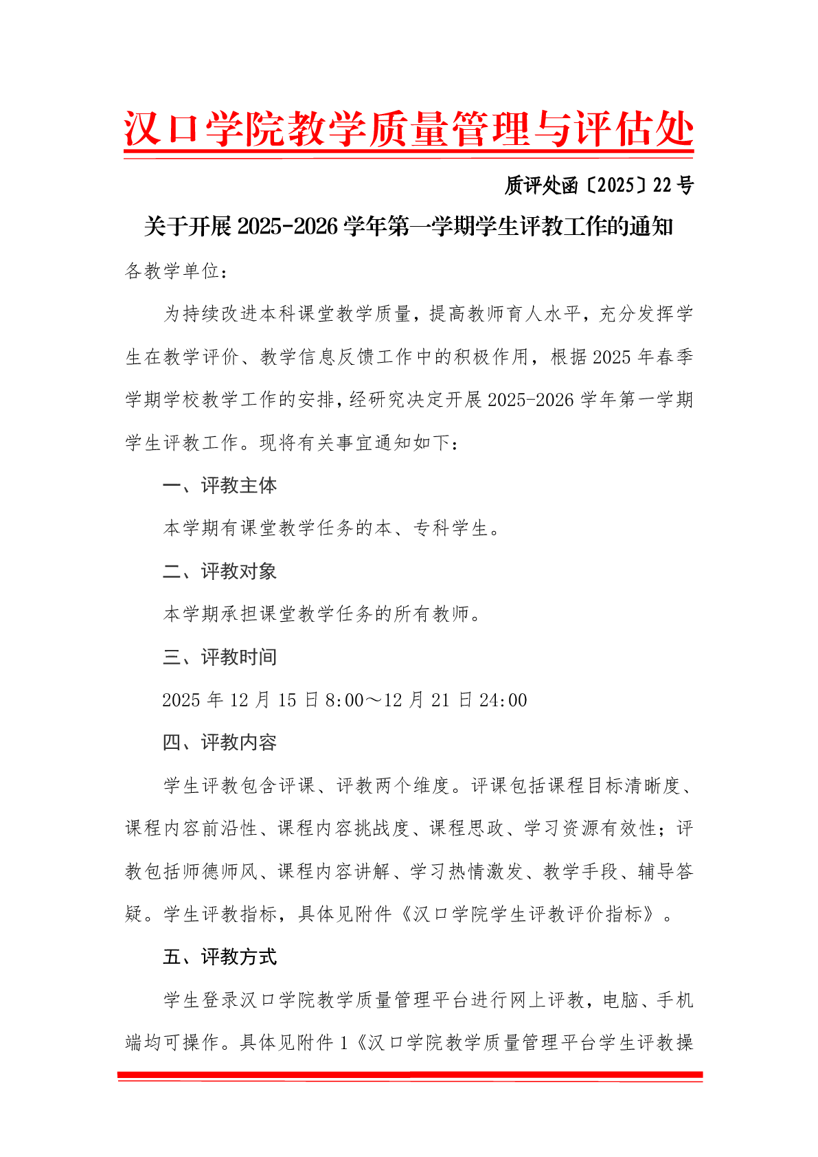 威廉希尔亚洲公司2025-2026学年第一学期学生评教工作的通知