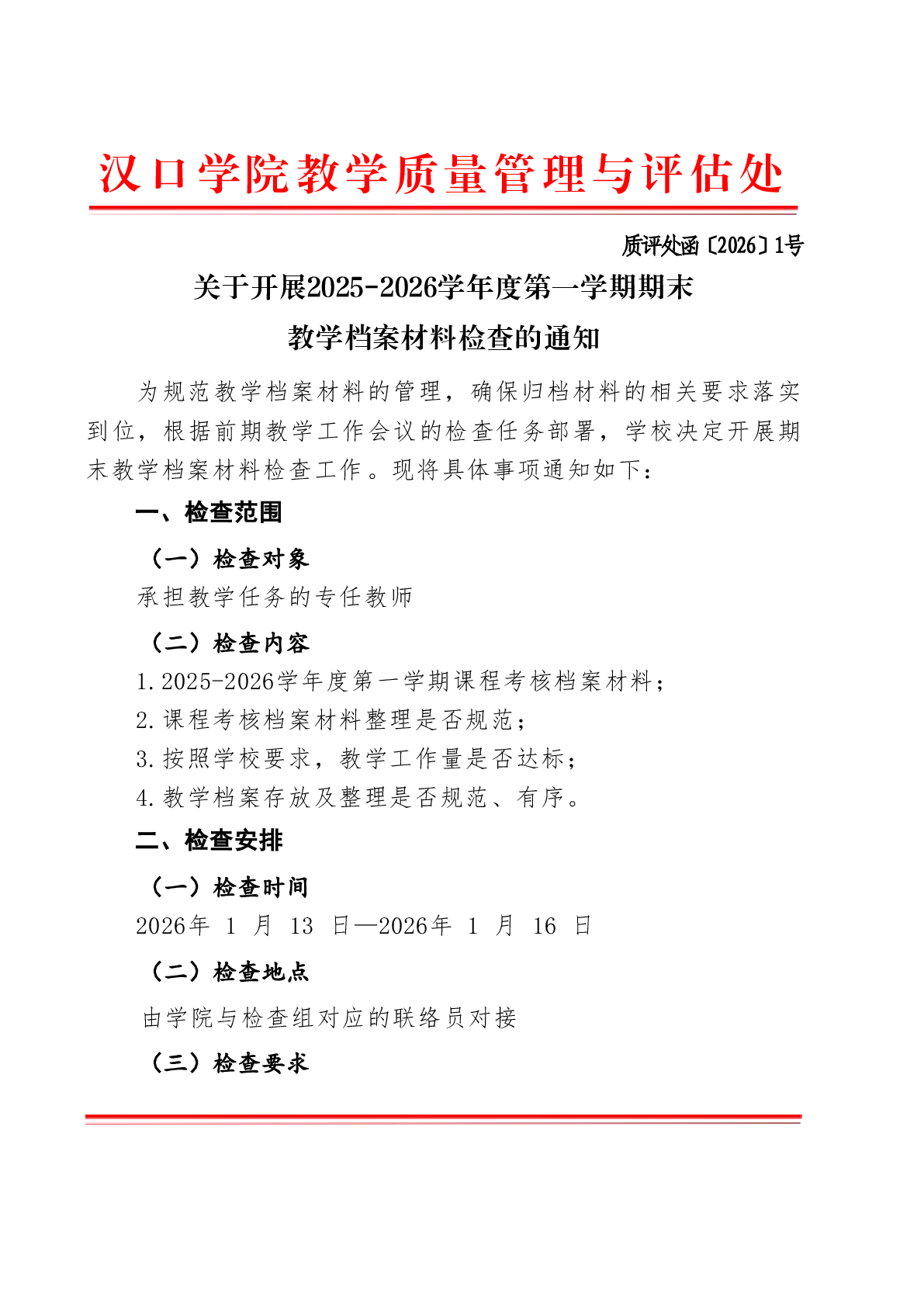 威廉希尔亚洲公司2025-2026学年度第一学期期末教学档案材料检查的通知