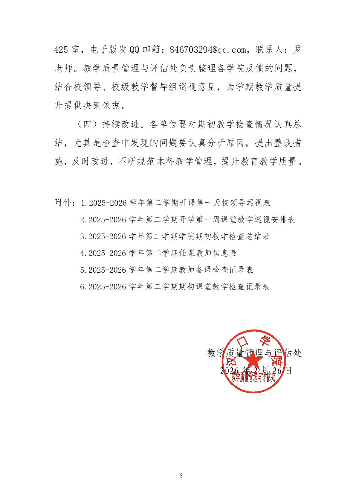 核发:教学质量管理与评估处