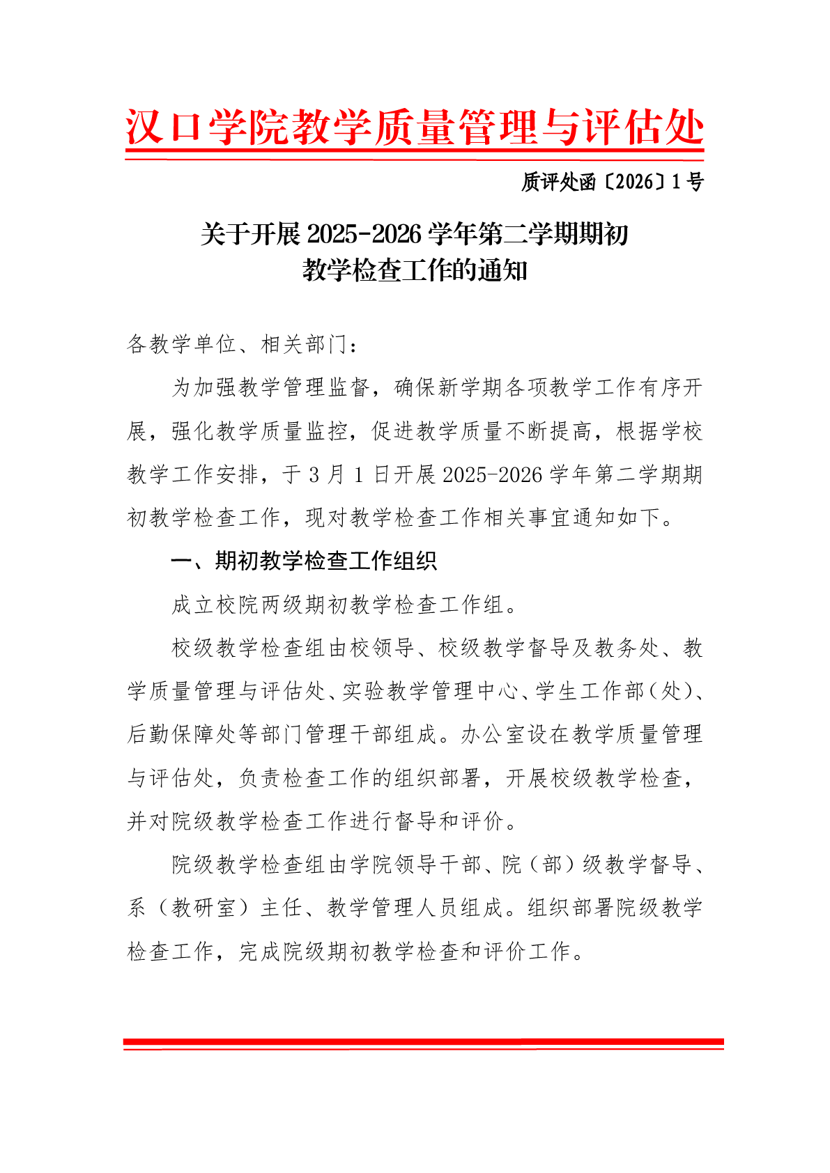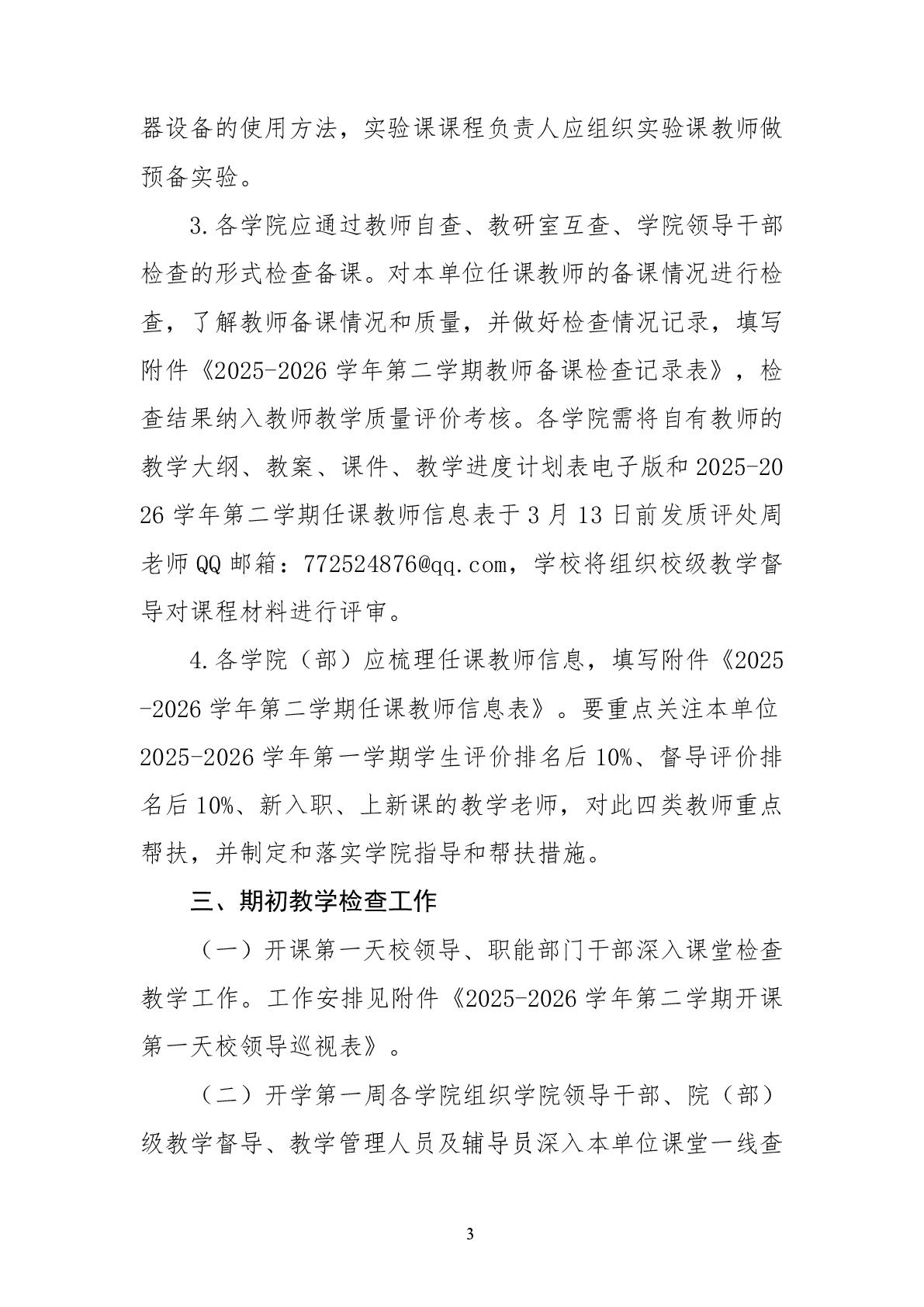 威廉希尔亚洲公司2025-2026学年第二学期期初教学检查工作的通知